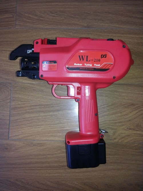 Atar diámetro es de 21mm. Rebar herramienta de vinculación puede completar 1200 lazos continuamente. Está equipado con dos 3000mA / h, baterías 9.6VNI-MH, especificación, instrucción de la operación, alicates pinza, llave Allen, un cargador y cuatro rollos de alambre (cada bobina de alambre es de 100 metros y se puede completar 200 lazos)Ventajas: